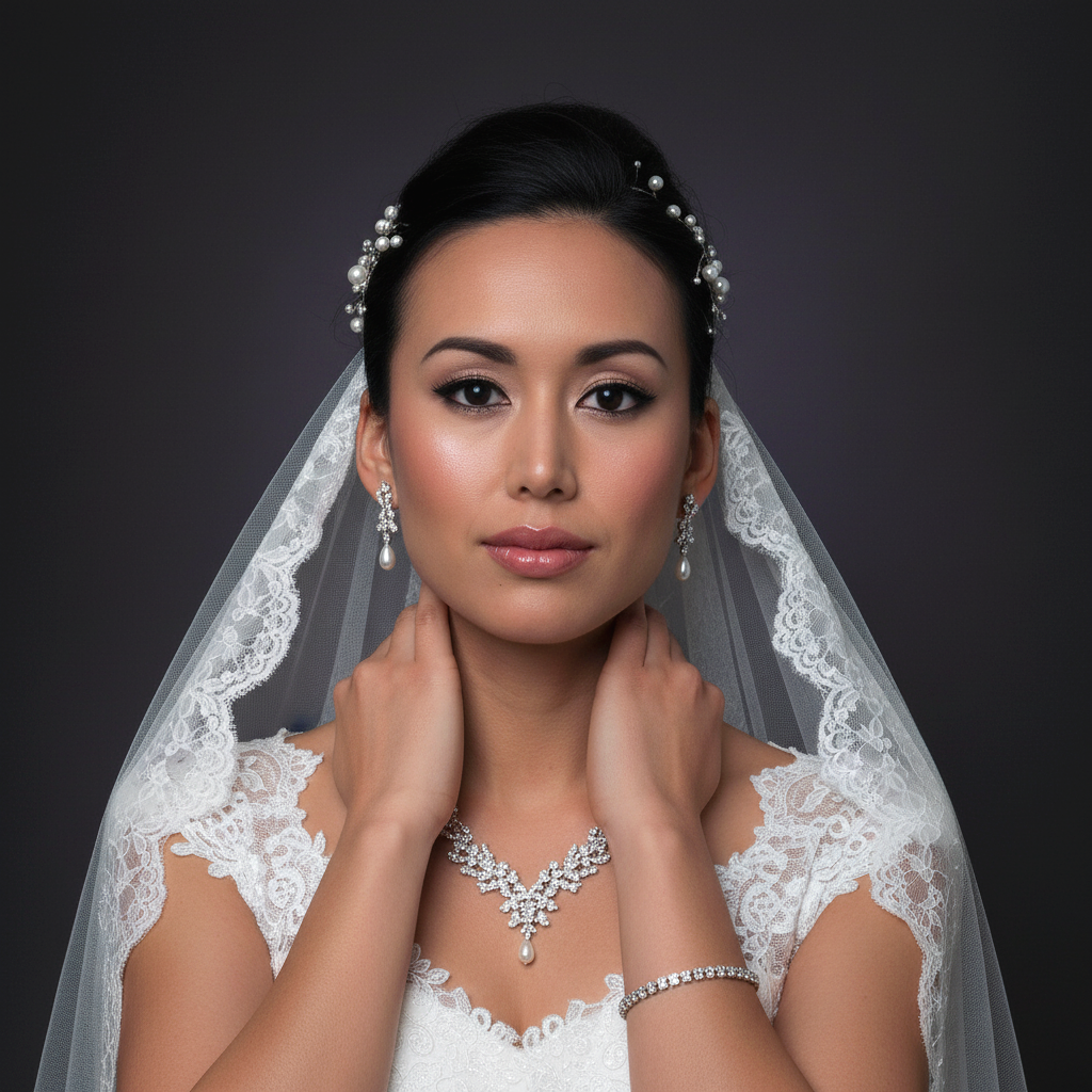 A glimpse into the craftsmanship of beauty—expert hands refining every detail for a stunning, polished wedding or photoshoot look.